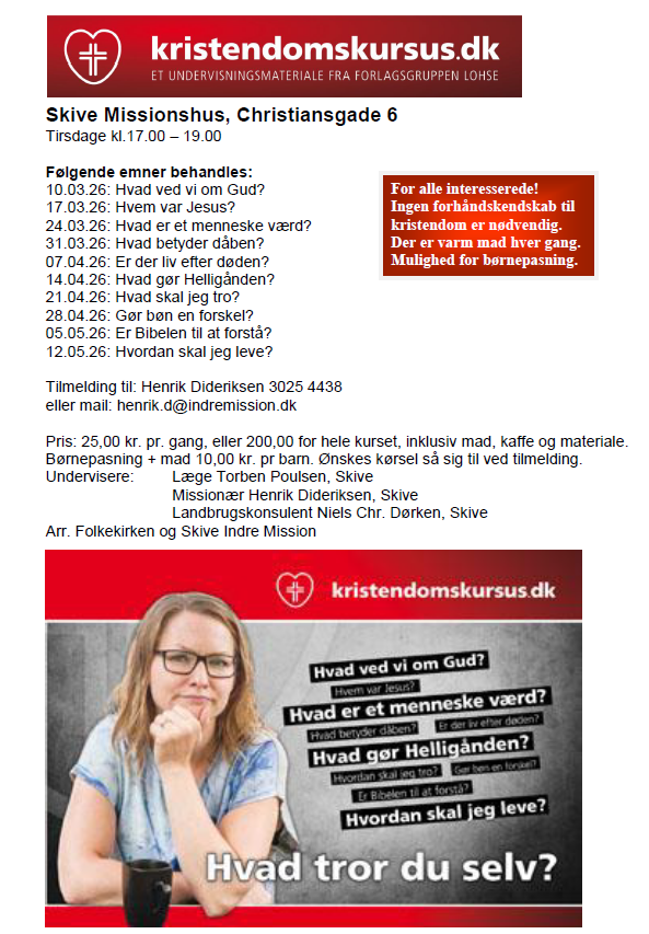 Kristendomskursus 10-3 til 12-5 2026